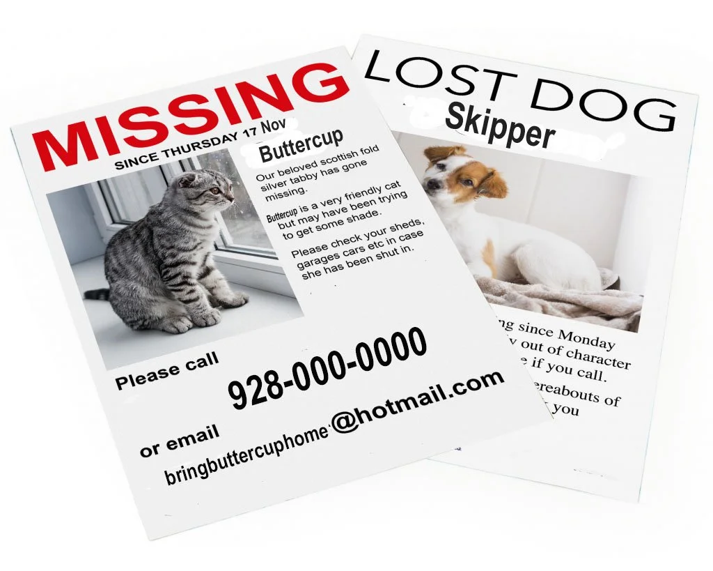Help Find myLost Pet! Help Find my Lost Pet Date MM DD YYYY Name * First Name Last Name Phone Number Address Address 1 Address 2 City State/Province Zip/Postal Code Country Email * Message * What was the location where your pet went missing: (address or cross-streets) Breed / Species (dog/cat/other) / Age Unusual Markings? Collar Yes No Micro Chipped Yes No How long have you had your pet? How did your pet escape or get lost and how long until you realized your pet was missing? Is your pet familiar with the area where it became lost? Yes No Is you lost pet close to one of your other pets? Yes No If yes, name of pet Does your pet easily come to a particular person? Yes No If yes, name of person Your Current Vet's name/address Date and time your pet became lost: Weight Check Female spayed Female - NOT spayed Male neutered Male - NOT neutered Does your pet have any medical conditions or allergies? What food does your pet typically eat? What is your pet's normal disposition? (shy, aggressive, nervous) Have you contaced Animal Control? Yes No Yavapai Humane Trappers assists owners to find their pets. Will you actively search for your lost pet on a daily basis? Yes No Do you have friends/neighbors who will assist in the search? Yes No If Yavapai Humane Trappers assist in the search for your lost pet, do you agree to print 100 Lost Animal flyers and post them around your area? Yes Please list any sighting for your lost pet: (If possible, include time of day) Is there any additional information that could help locate your lost pet? We gratefully accept donations to offset the costs involved to find your lost pet. You can donate on our website www.yavapaihumanetrappers.org Yavapai Humane Trappers Animal Search and Rescue is a 501 C (3) non-profit organization with a team of volunteers. Thank you! Lost Pet Form